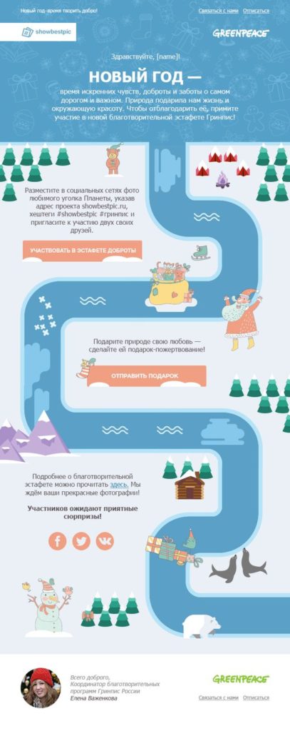 Такие емейлы не столько красивые и креативные, сколько действительно вовлекающие. Люди более охотно взаимодействуют с брендом, если им предлагают активность развлекательного характера.