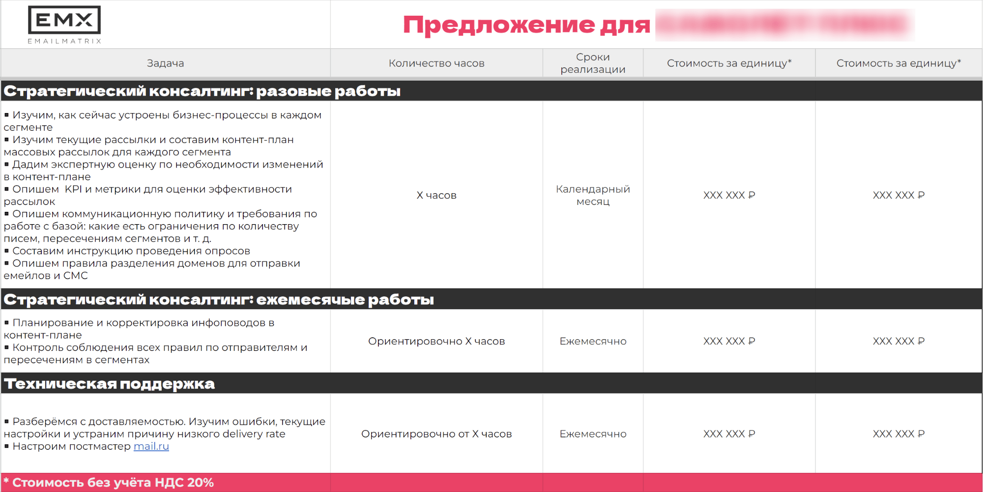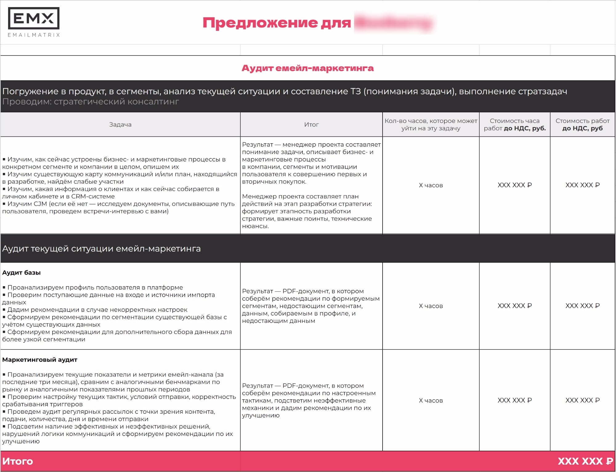 Для этого мы погрузимся в задачи бизнеса, проведём аудит текущей коммуникации, разработаем стратегию для выбранного сегмента или воронки продаж, внедрим её и измерим результаты. Далее масштабируем изменения или перейдём к следующему участку сегмента.